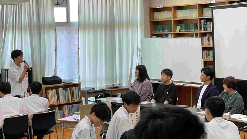 後半は、地元企業(第一建設、エイチアンドエフ、すててこ)の若手社員の方から、ご自身の実体験を踏まえて、進路選択、大学での学び、地元で働く意義について話をしていただきました。