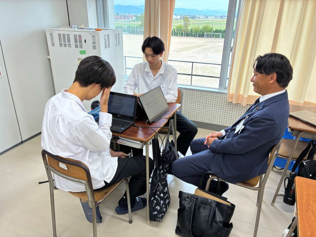 10月3日(金)、第2学年の課題探究活動(地方創生・地域探究講座)に、あわら市議会議員6名がアドバイザーとして参加してくださいました。各議員の皆さんは、担当して頂いた班の課題探究について説明を受けた上で、生徒たちのアイディアを引き出すような問いかけをしたり、どのようなデータを集めればよいかについて一緒に考えたりしてくださいました。生徒たちは、次回以降の課題探究に生かそうと真剣に話を聞きながら、メモを取ったり、議員の方々の問いかけに答えたりしていました。
