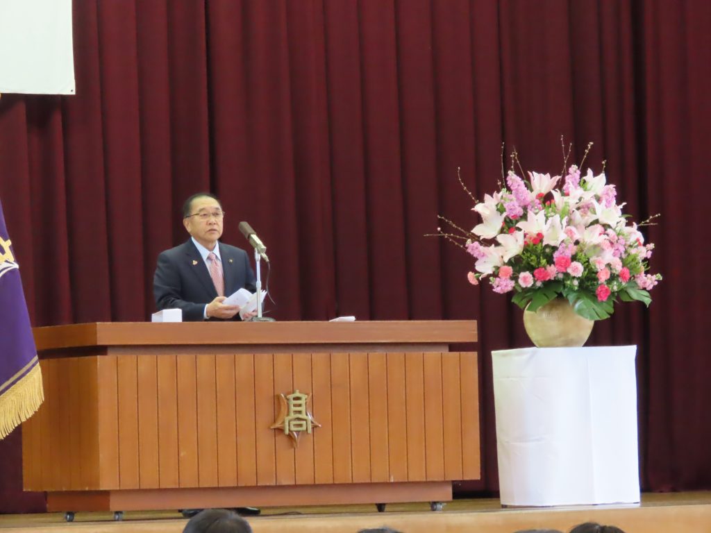 澤田校長は式辞の中で、コロナ渦の制約が緩和された中で、卒業生が、校訓「親 真 信」の体現を目指して勉学、探究活動、部活動、学校行事等の一つ一つに全力で取り組み、自分の殻を破る挑戦をしつづけたことを賞賛するとともに、不透明な国際情勢やAIが社会を変えようとしている現状を踏まえ、①自分の軸を持つこと ②希望を持ち続けること を大切にして人生を歩んでいってほしいと、卒業生にエールを送りました。続いて、森之嗣あらわ市長(本校育成会会長)様、竹澤雄一PTA会長様からも温かいご祝辞をいただきました。